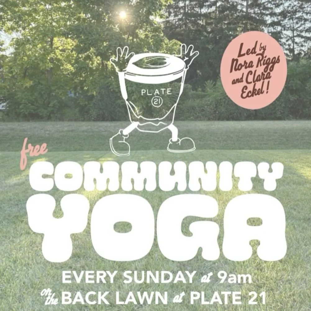 Community Yoga will be SUNDAYS at 9am on the back lawn behind Plate 21!